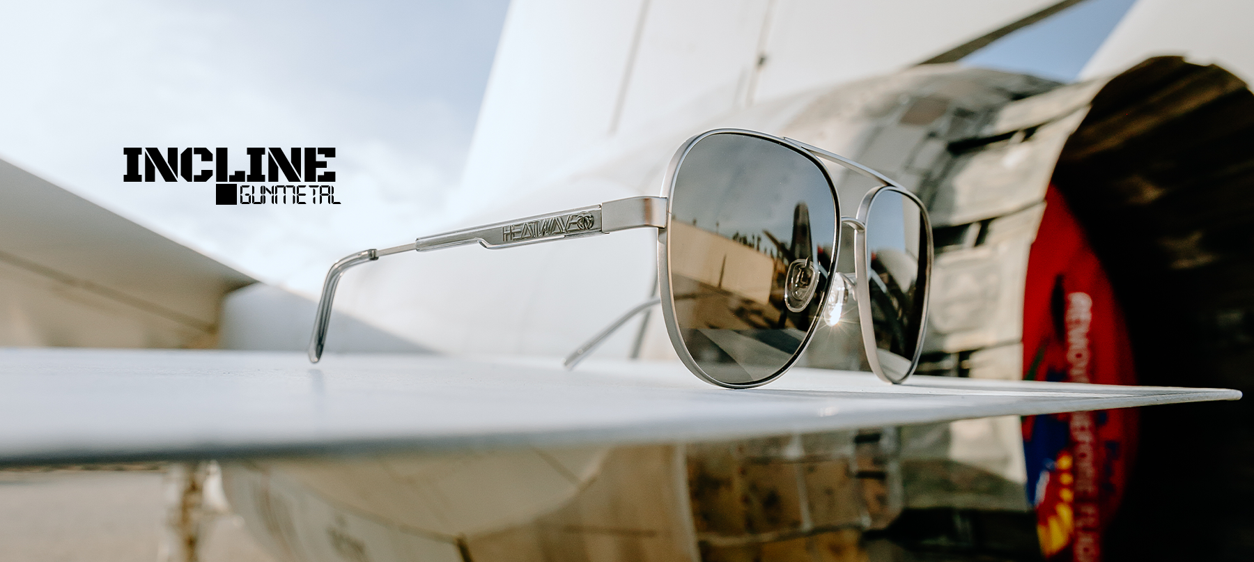 These glasses feature a metal rim, with modern flat lenses and our signature bold branding on the arm. So whether you're ripping AIM-9X’s off the rails, running airspace from the tower, or just need a great pair of sunglasses to seek the heat in—the Nimitz and Incline are gassed up and waiting for you on the ramp.